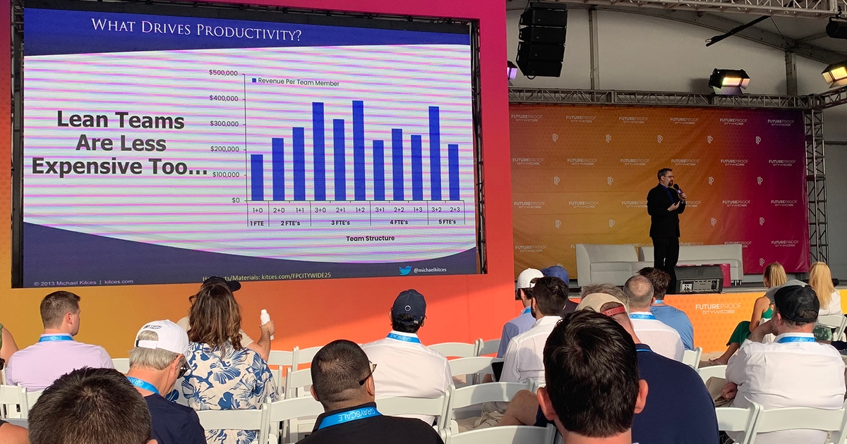 A freshly launched Kitces survey at this week's Future Proof Citywide wealth management conference finds that advisory teams with one advisor and two support staff hit a revenue sweet spot, outperforming larger ensembles. Michael Kitces argues scaling up often backfires due to inefficiencies.